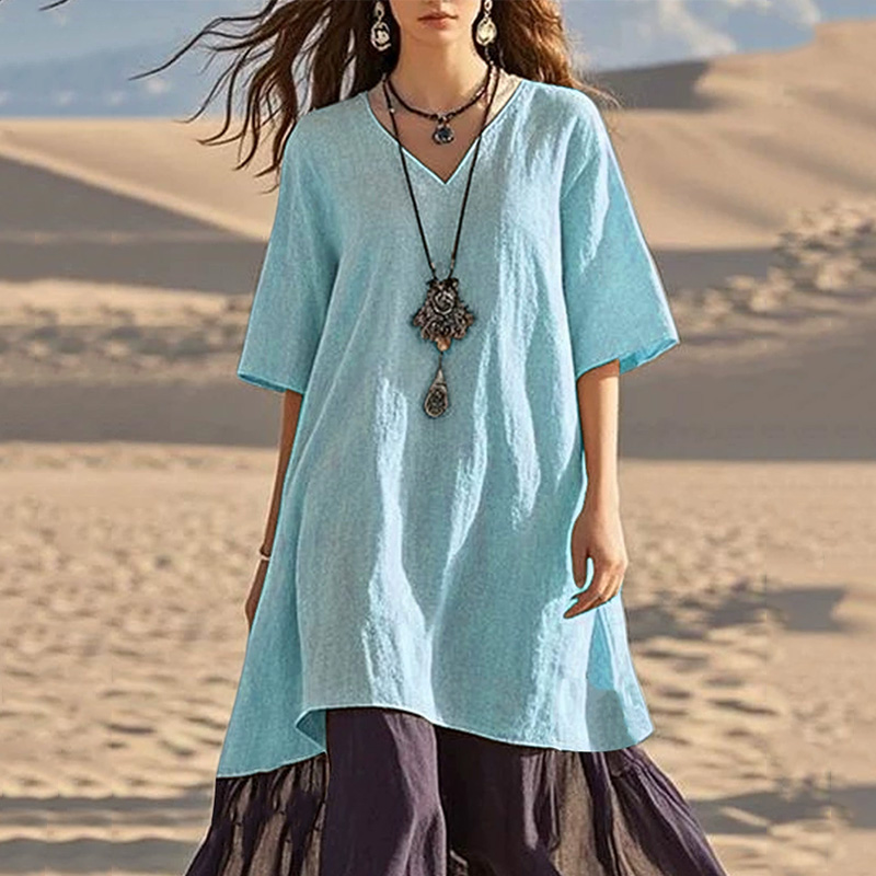 Vintage Boho Gradient Lace Hem Linen Blend Tunic