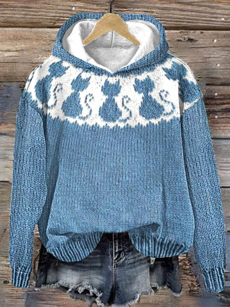 Winter Funny Cute Wonderland Clothing Cat Print Sweatshirt