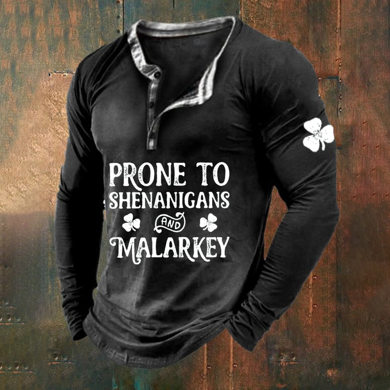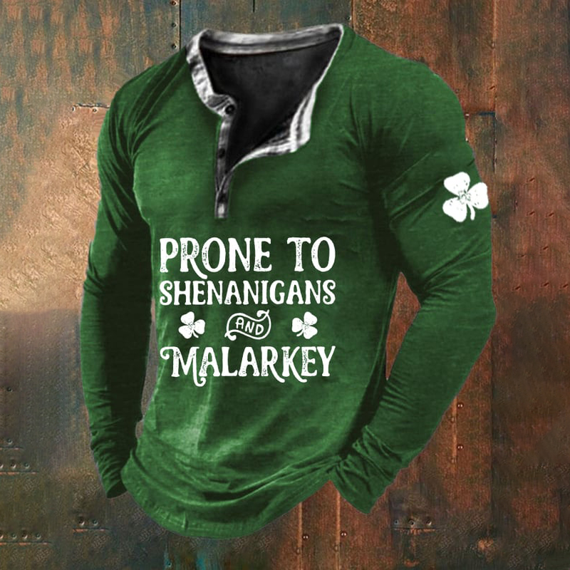 Men's St. Patrick's Day Prone To Shenanigans And Malarkey Casual Long Sleeve T-Shirt