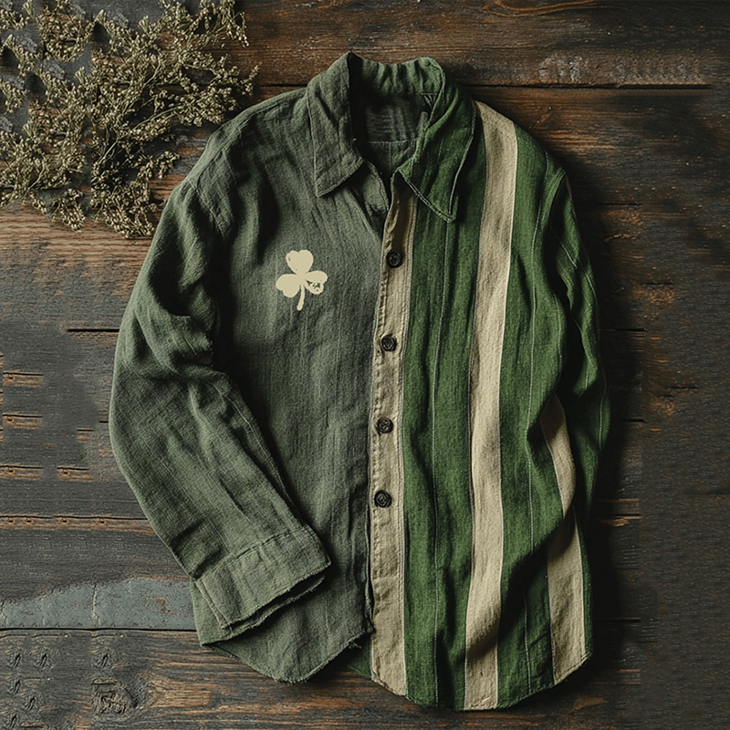 Men's St. Patrick's Day Striped Design Trefoil Print Casual Long Sleeve Shirt
