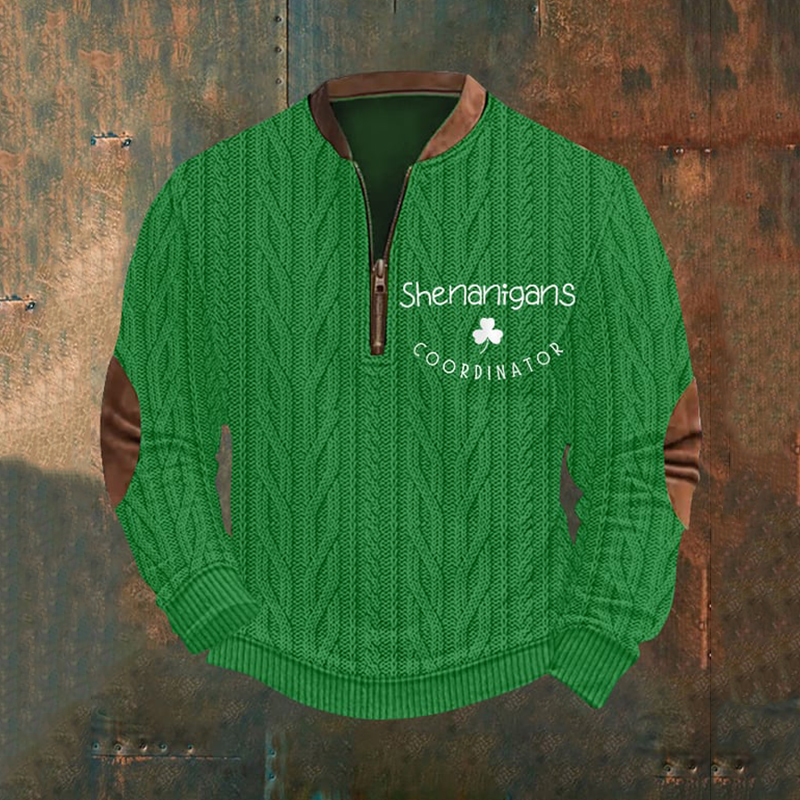Men's St. Patrick's Day Print Zipper Collar Casual Sweatshirt