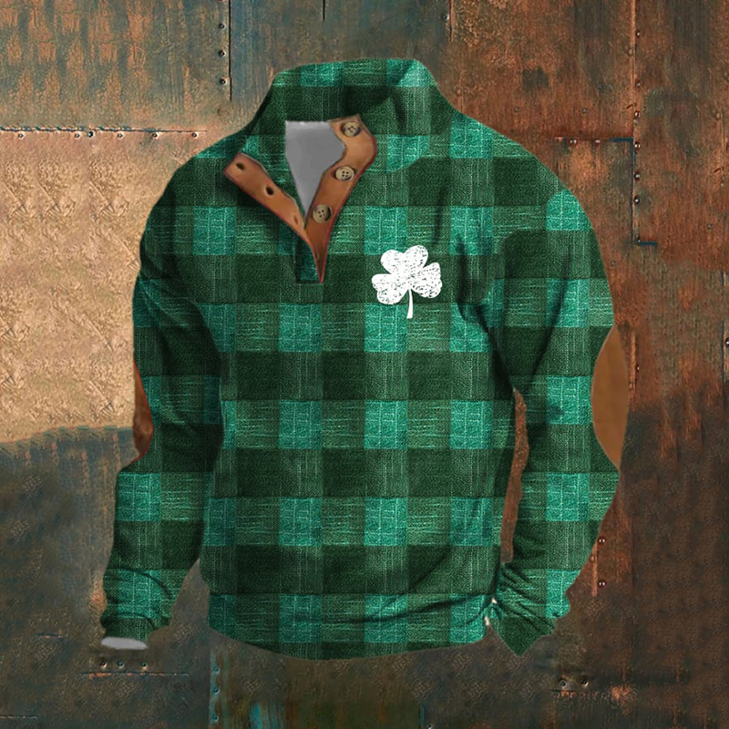 Men's Vintage Irish Plaid Pattern Buttoned Comfy Sweatshirt
