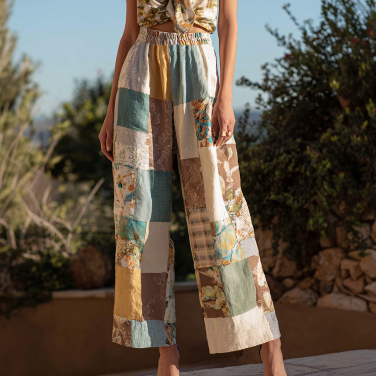 Women's Retro Bohemian Floral Patchwork Linen Trousers
