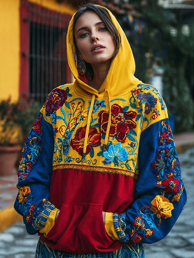 Women's Venezuelan Floral Pattern Casual Hoodie
