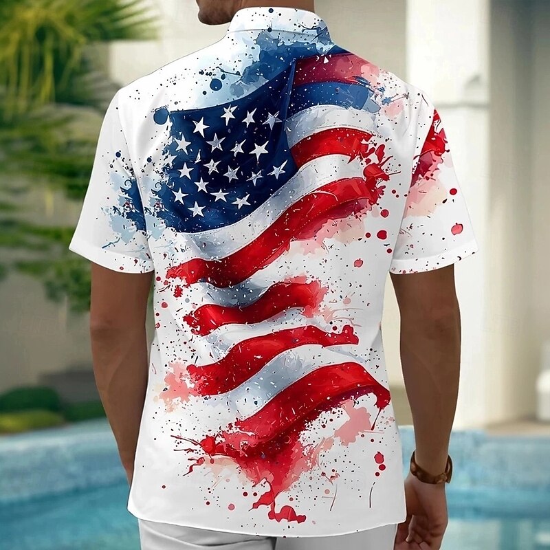 Men's American Us Flag Patriotic Print Pocket Button Up Shirt