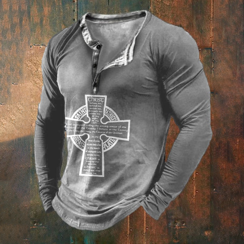 Men's Casual St Patrick'S Day Print Button Long Sleeve Top