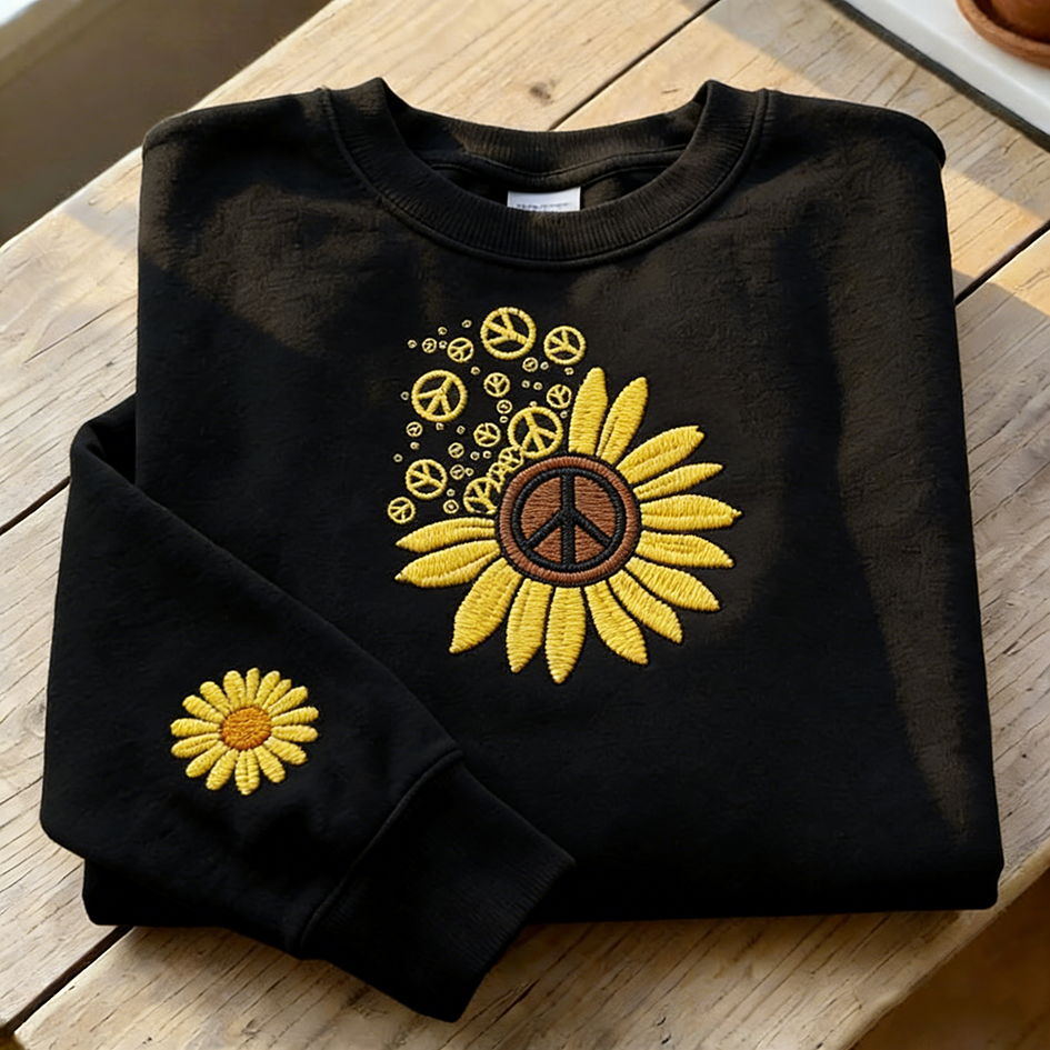Plant Flower Pattern And Peace Sign Pattern Design Casual Round Neck Sweatshirt