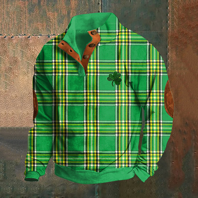 Vintage Ireland Plaid Embroidery Art Graphic Print Casual Sweater