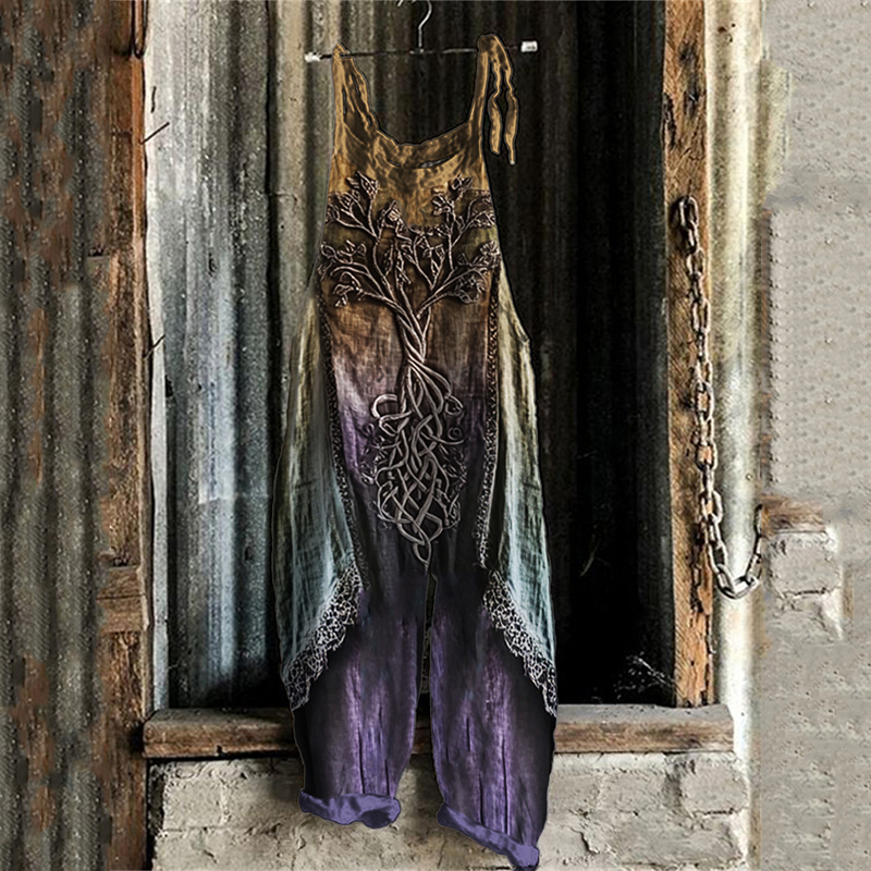 Vintage Tree Of Life Gradient Linen Jumpsuit