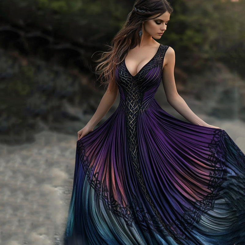 Vintage Viking Pattern Gradient Casual Tank Dress