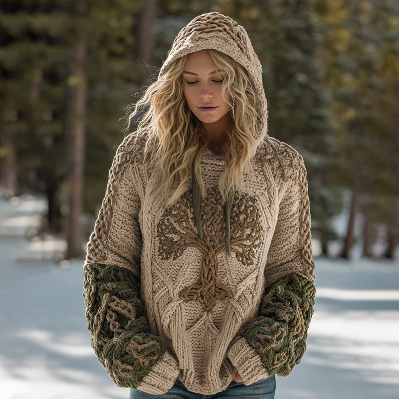 Women's Viking Tree Of Life Cozy Knit Hooded Sweater