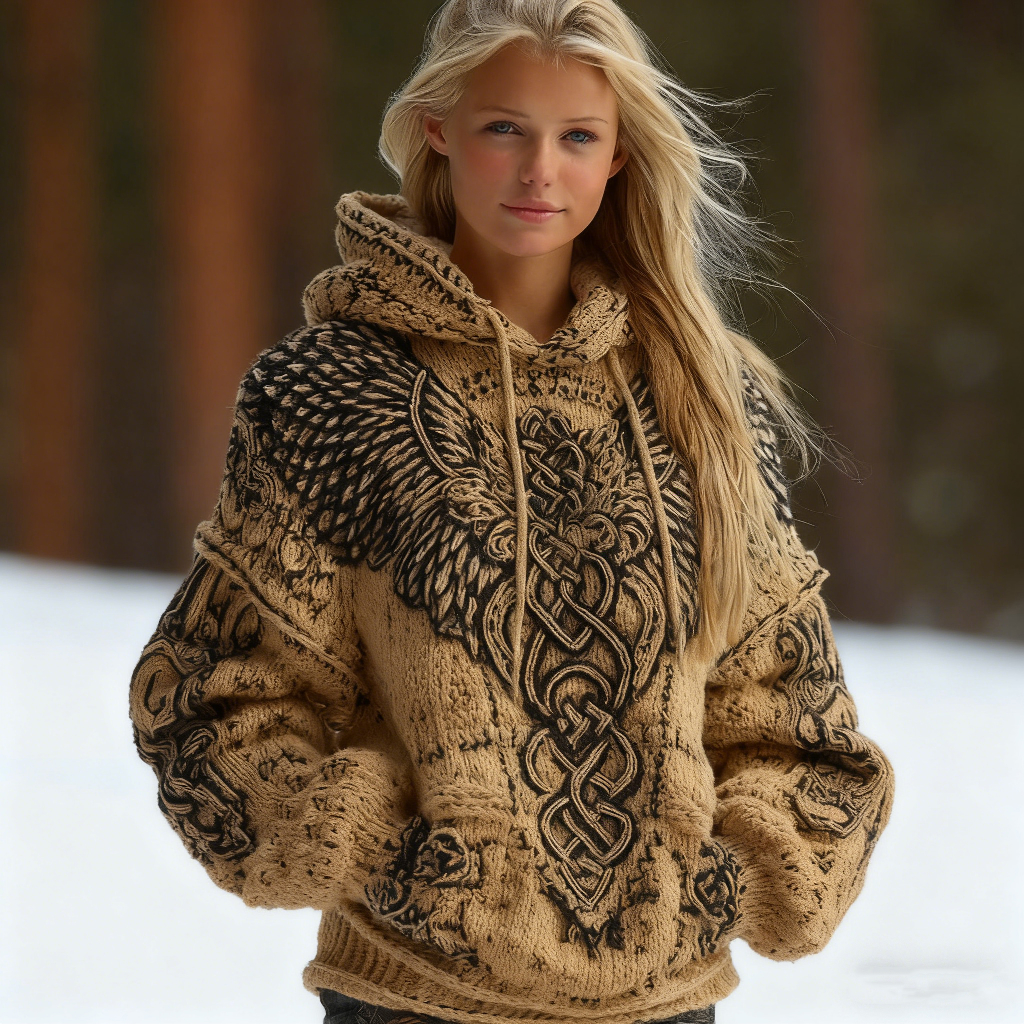 Women's Vintage Viking Celtic Knot And Wings Knit Hooded Sweater