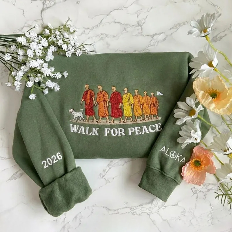 Embroidered Walk For Peace Monk Women's Sweatshirt