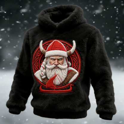 Men's Viking Santa Christmas Art Cozy Plush Hoodie