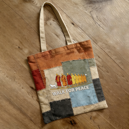 Walking Peace Slogan In Patchwork Ecofriendly Tote Bag