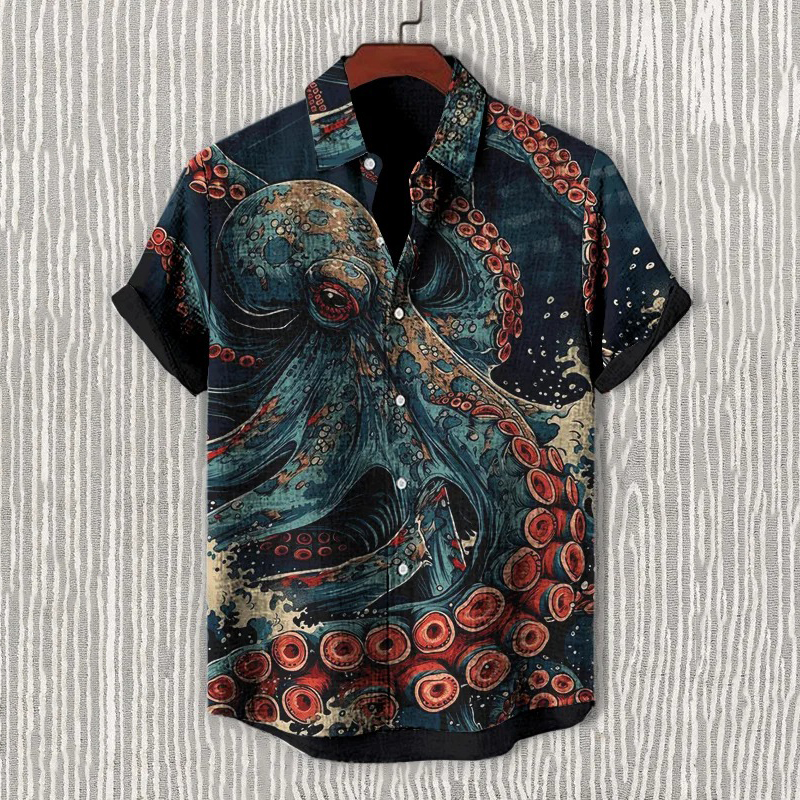 Men's Octopus Japanese Art Print Short Sleeve Shirt