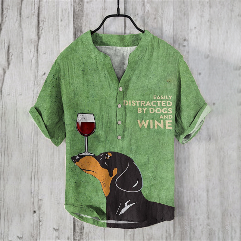 Abstract Creative Dog Dachshund Love Red Wine Art Linen Blend Shirt