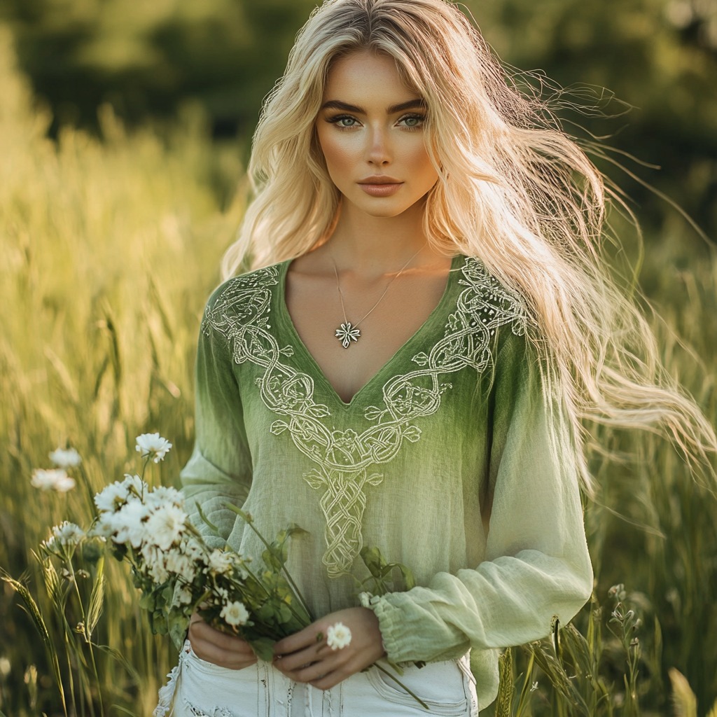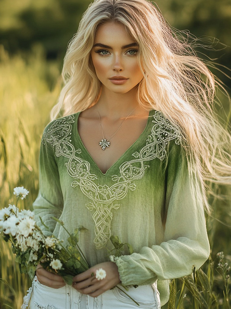 Cozy St. Patrick's Shamrock Celtic Knot Blend Linen V-neck Shirt