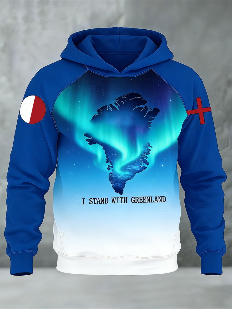 Greenland Aurora Print Men's Hooded Sweatshirt