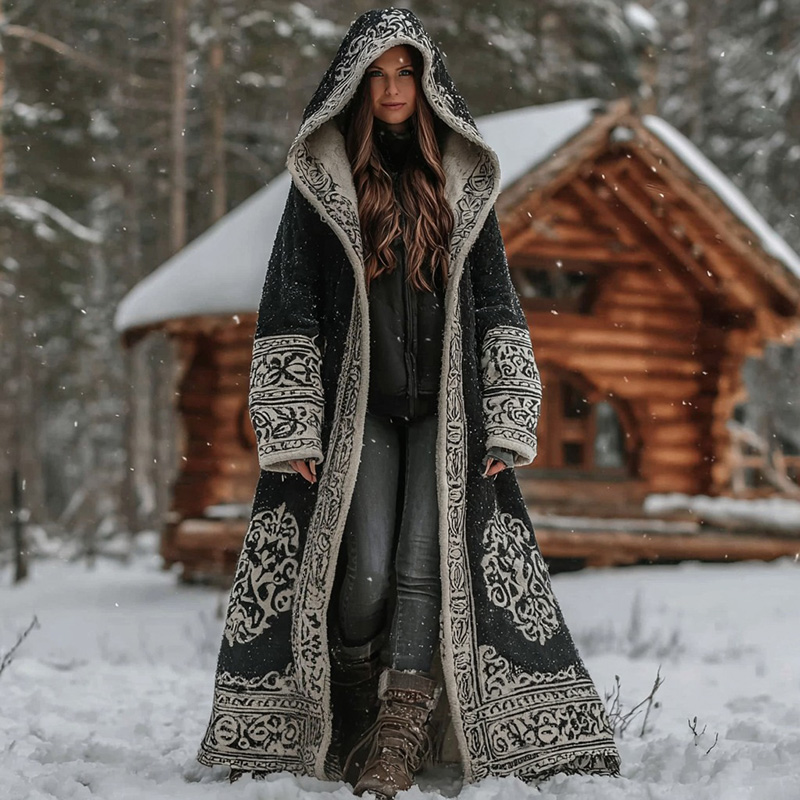 Women's Vintage Celtic Knot Knitted Jacquard Long Hooded Cardigan