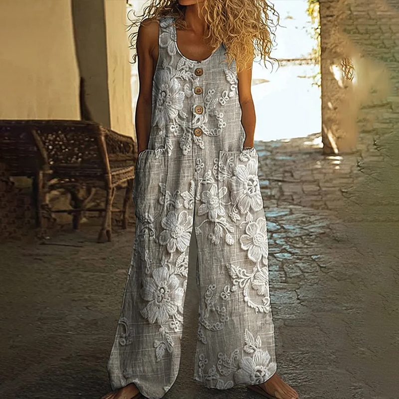 Women's Vintage Floral Lace Embroidered Wide Leg Jumpsuit