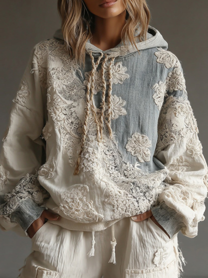 Women's Vintage Rose Floral Art Casual Warm Hoodie